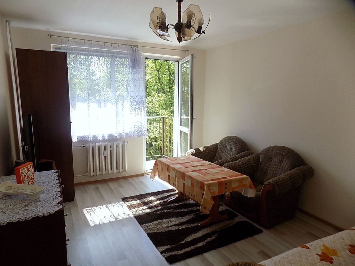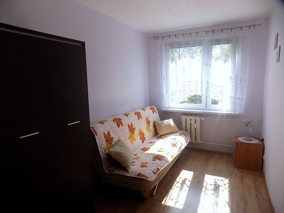 Powierzchnia 47,6m2, dwa niezależne pokoje. Z większego jest wyjście na balkon.